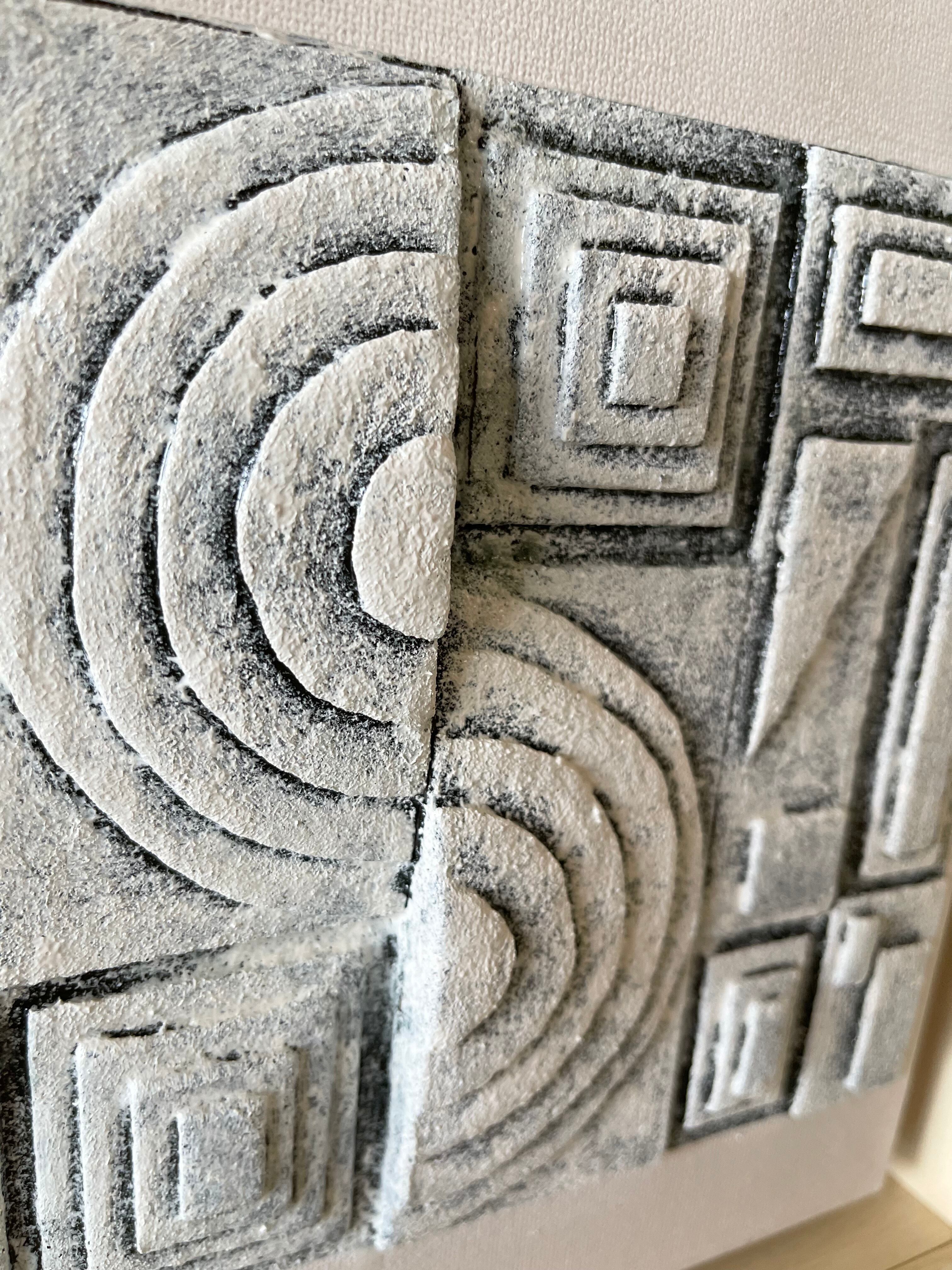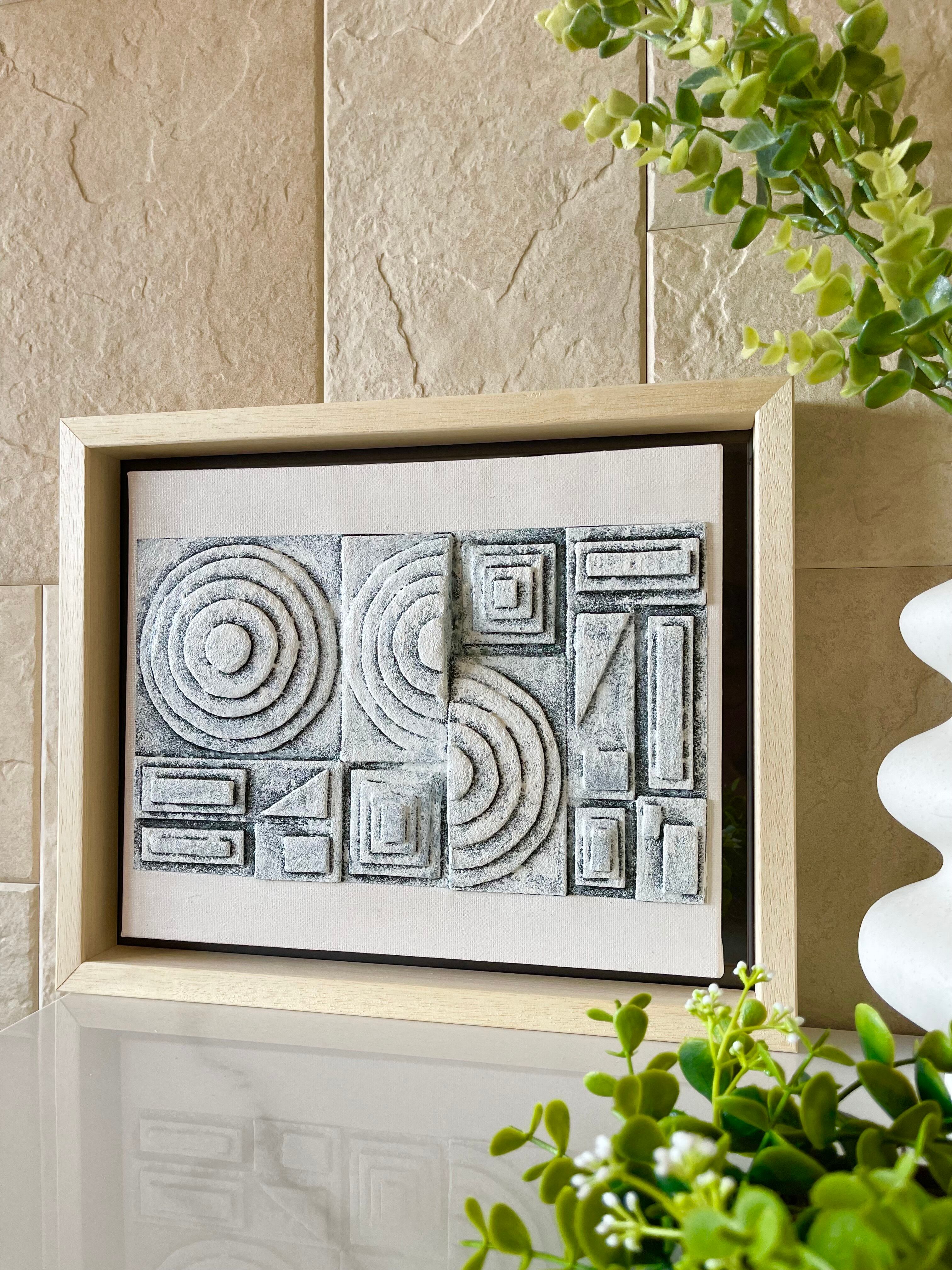 composition rectangle No.5は、重なり合う形が織りなすデザインが特徴の作品です。存在感のある図形とに、柔らかな色合いが美しく融合し、あらゆるインテリアに自然に調和します。この作品は、リビングや寝室はもちろん、オフィス空間でもスタイリッシュな雰囲気を演出し、心地よい空間を提供します。