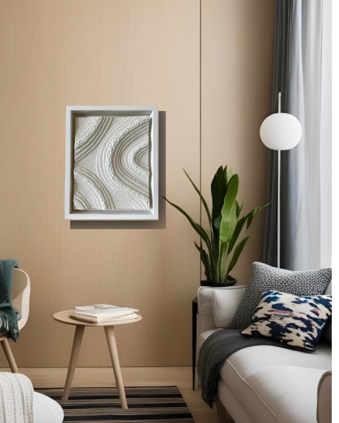 composition rectangle No.10は、美しい曲線で構成された美しいアート作品です。柔らかくソフトな白が空間に温かみをもたらし、どのインテリアスタイルにもスムーズに融合します。この作品は、リビングルームや寝室に加え、オフィススペースでも視覚的なアクセントとなり、洗練された雰囲気を演出します。